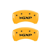 Lot de 4 couvre-étriers, gravés avant et arrière : MGP, finition poudre noire, caractères argentés.