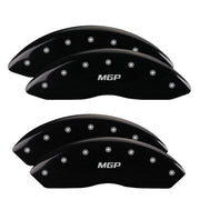 Lot de 4 couvre-étriers, gravés avant et arrière : MGP, finition poudre noire, caractères argentés.