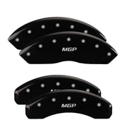 Lot de 4 couvre-étriers, gravés avant et arrière : MGP, finition poudre noire, caractères argentés.