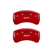 Lot de 4 couvre-étriers, gravés avant et arrière : MGP, finition poudre rouge, caractères argentés.