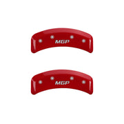 Lot de 4 couvre-étriers, gravés avant et arrière : MGP, finition poudre rouge, caractères argentés.