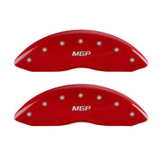 Lot de 4 couvre-étriers, gravés avant et arrière : MGP, finition peinture poudre rouge, caractères argentés