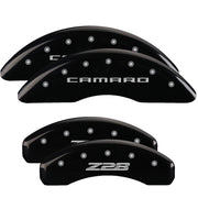 Lot de 4 couvre-étriers, gravés avant et arrière : MGP, finition peinture poudre jaune, caractères noirs