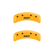 Lot de 4 couvre-étriers, gravés avant et arrière : MGP, finition peinture poudre jaune, caractères noirs