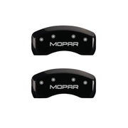 Lot de 4 couvre-étriers, gravés avant et arrière : MOPAR, finition poudre noire, caractères argentés.