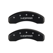 Lot de 4 couvre-étriers, gravés avant et arrière : MOPAR, finition poudre rouge, caractères argentés.