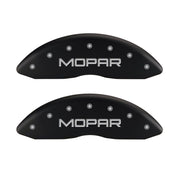 Lot de 4 couvre-étriers, gravés avant et arrière : MOPAR, finition poudre rouge, caractères argentés.