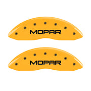 Lot de 4 couvre-étriers, gravés avant et arrière : MOPAR, finition peinture poudre jaune, caractères noirs