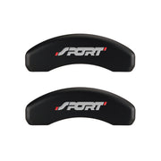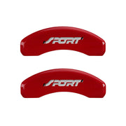 Ensemble de 4 couvre-étriers, gravés avant et arrière : sans boulons/sport, finition poudre rouge, caractères argentés.