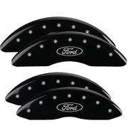 Lot de 4 couvre-étriers, gravés avant et arrière : logo ovale/Ford, finition poudre noire, caractères argentés.