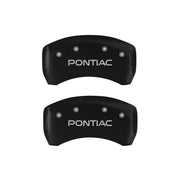 Lot de 4 couvre-étriers, gravés avant et arrière : Pontiac, finition poudre rouge, caractères argentés.