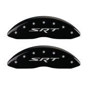 Lot de 4 couvre-étriers, gravés avant et arrière : SRT, finition poudre noire, caractères argentés.