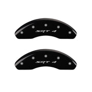 Lot de 4 couvre-étriers, gravés avant et arrière : SRT4, finition poudre noire, caractères argentés.