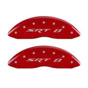 Lot de 4 couvre-étriers, gravés avant et arrière : SRT8, finition poudre rouge, caractères argentés.