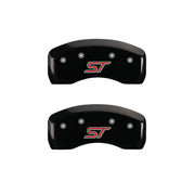 Lot de 4 couvre-étriers, gravés avant et arrière : ST, finition poudre noire, caractères argentés.