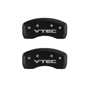 Lot de 4 couvre-étriers, gravés avant et arrière : Vtech, finition poudre rouge, caractères argentés.
