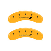 Lot de 4 couvre-étriers, gravés avant et arrière : sans bandes/Dodge, finition poudre noire, caractères argentés.