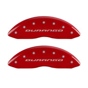 Lot de 4 couvre-étriers, gravés avant et arrière : sans bandes/Durango, finition poudre rouge, caractères argentés.