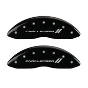 Lot de 4 couvre-étriers, gravés avant et arrière : avec bandes/Challenger, finition poudre noire, caractères argentés.