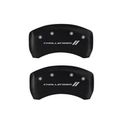 Lot de 4 couvre-étriers, gravés avant et arrière : avec bandes/Challenger, finition poudre rouge, caractères argentés.