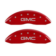 Ensemble avant 2 couvre-étriers, gravé à l'avant : GMC, finition avec revêtement en poudre rouge, caractères argentés.