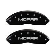 Ensemble avant 2 couvre-étriers, gravé avant : MOPAR, finition avec revêtement en poudre noire, caractères argentés.