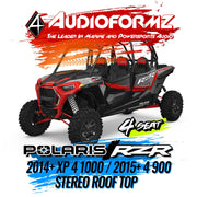 Maximize your off-road experience with the AudioFormz rooftop stereo system, exclusively crafted for the Polaris RZR4-900 (2015+) and RZR4-1000. Renowned for its superior performance and style, this stereo top is made from solid hand-laid fiberglass, offering unmatched lightness, loudness, and durability. The ultra-aggressive molded design not only enhances its aesthetic appeal but also complements the dynamic nature of the Polaris RZR4.