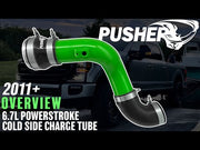 Le tube de charge côté froid Pusher HD 3" avec remplacement de papillon des gaz pour les camions Ford F250/350 6,7 L Powerstroke Super Duty 2017+ élimine complètement le tube de charge en plastique OEM sujet aux pannes et le papillon des gaz avec un assemblage entièrement usiné, plié au mandrin et soudé TIG pour résoudre le problème pour de bon. Il s'agit de la configuration idéale pour les ateliers et les propriétaires de camions à la recherche de la solution de la plus haute qualité pour un camion réglé.