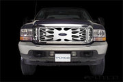 Grille de calandre en acier inoxydable Flaming Inferno pour Ford SuperDuty 99-04 avec découpe de logo (avec aérations latérales)