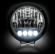 RECON Part # 2646HIDCL - HID DRIVING LIGHTS - 6" Round 6,250K HID Driving Light w/ Four 6,250K LED Daytime Running Lights - Chrome Internal Housing