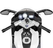 Rev Up Your Ride with the BMW K1300S Electric Bike for Kids Make Dad jealous with the terrific, licensed BMW K1300S Electric Ride-On Bike. This is the closest kids will get to the real deal with official BMW branding and all the premium features and sleek design that goes into a full-sized bike. Kids will feel like grown-ups with the real key start function, which ignites with fun engine sounds. The light-up dashboard adds to the realism, sparking children's imaginations. Flick the front light on, select one of the three gears and cruise away using the foot accelerator. Your child will love the rush of wind through their hair but don't worry, the bike comes equipped with sturdy stabilizers to add balance and prevent accidents and easy grip handles for a comfortable ride. Powered by a 12V rechargeable battery, the bike reaches safe speeds of up to 3.7 mph (5.9 km/h). Little ones can make use of the reverse function to get out of tight spots and back up so everyone can get a second look at their cool new ride. The bike even plays a selection of eight songs for the perfect soundtrack to a ride. Safe, fast, and exciting – this ride-on will fast become a child's prized possession. Key Features: Real key start function with engine sounds Foot accelerator Dashboard Display Front Light switch Motor: 1 x 30W Battery: 12-Volt 3.5AH Max User Weight: 66 lbs Suitable for 3 to 7 years old Authentic BMW replica Additional Specifications: Brand: BMW Theme: n/a Recommended Age Range: ages 3 years old and up! Age Level: 3-4 Years, 4-7 Character Family: n/a