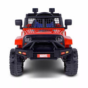 The Spiderman SUV 6 Volt Ride-On Toy is available in two styles: Disney Princess and Marvel Spiderman. The Disney Princess style features beloved Disney heroines, inspiring kids with their relatable and empowering stories. The Marvel Spiderman style is adorned with Spiderman decals and bold red and blue colors, capturing the essence of the iconic superhero. The hubcaps even have spiderweb designs, adding an extra touch of excitement.