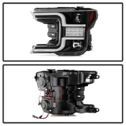 Phares Spyder 18-19 Ford F-150 Proj - Modèle halogène - Clignotant séquentiel à LED - Noir PRO-YD-FF15018-LBSEQ-BK