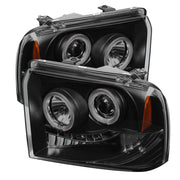 Phares de projecteur Spyder Ford F250/350 05-07 LED Halo LED Blk Smke PRO-YD-FS05-HL-BSM