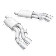 Système d'échappement 2016-19 Stainless Works, Cadillac CTS-V Sedan avec entrée pliée au mandrin de 3" se transformant en silencieux turbo à double mode avec embouts de coupe quadruple de 4" de diamètre. Chaque côté est une construction monobloc soudée complète, y compris les supports. Factory Connect Axleback nécessite la découpe des tuyaux d'échappement devant les silencieux d'usine et s'adapte au système d'échappement d'usine. Comprend des soupapes de performance à double mode fonctionnelles dans les embouts qui fonctionnent en conjonction avec les modes Tour et Track.