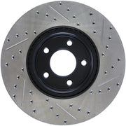 Les disques de frein sport percés et rainurés StopTech sont des disques de frein monobloc de remplacement direct pour les systèmes de freinage d'usine et les étriers de série qui ont fière allure derrière vos roues et offrent des performances de freinage considérablement améliorées. Le perçage transversal et le rainurage uniques facilitent la dispersion de la chaleur et de la poussière de frein, empêchent le glaçage des plaquettes, ajoutent du mordant et améliorent les performances de freinage sur sol sec et humide. Conçu pour durer, le revêtement électronique noir offre une protection contre la corrosion et la métallurgie à haute teneur en carbone (dans la plupart des applications) offre un fonctionnement plus silencieux, une meilleure résistance aux fissures et des performances accrues.