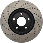 Les disques de frein sport percés et rainurés StopTech sont des disques de frein monobloc de remplacement direct pour les systèmes de freinage d'usine et les étriers de série qui ont fière allure derrière vos roues et offrent des performances de freinage considérablement améliorées. Le perçage transversal et le rainurage uniques facilitent la dispersion de la chaleur et de la poussière de frein, empêchent le glaçage des plaquettes, ajoutent du mordant et améliorent les performances de freinage sur sol sec et humide. Conçu pour durer, le revêtement électronique noir offre une protection contre la corrosion et la métallurgie à haute teneur en carbone (dans la plupart des applications) offre un fonctionnement plus silencieux, une meilleure résistance aux fissures et des performances accrues.