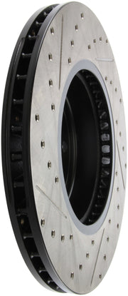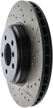 Les disques de frein sport percés et rainurés StopTech sont des disques de frein monobloc de remplacement direct pour les systèmes de freinage d'usine et les étriers de série qui ont fière allure derrière vos roues et offrent des performances de freinage considérablement améliorées. Le perçage transversal et le rainurage uniques facilitent la dispersion de la chaleur et de la poussière de frein, empêchent le glaçage des plaquettes, ajoutent du mordant et améliorent les performances de freinage sur sol sec et humide. Conçu pour durer, le revêtement électronique noir offre une protection contre la corrosion et la métallurgie à haute teneur en carbone (dans la plupart des applications) offre un fonctionnement plus silencieux, une meilleure résistance aux fissures et des performances accrues.