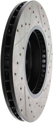 Les disques de frein sport percés et rainurés StopTech sont des disques de frein monobloc de remplacement direct pour les systèmes de freinage d'usine et les étriers de série qui ont fière allure derrière vos roues et offrent des performances de freinage considérablement améliorées. Le perçage transversal et le rainurage uniques facilitent la dispersion de la chaleur et de la poussière de frein, empêchent le glaçage des plaquettes, ajoutent du mordant et améliorent les performances de freinage sur sol sec et humide. Conçu pour durer, le revêtement électronique noir offre une protection contre la corrosion et la métallurgie à haute teneur en carbone (dans la plupart des applications) offre un fonctionnement plus silencieux, une meilleure résistance aux fissures et des performances accrues.