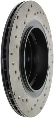 Les disques de frein sport percés StopTech sont des disques de frein monobloc de remplacement direct pour les systèmes de freinage d'usine et les étriers de série qui ont fière allure derrière vos roues et offrent des performances de freinage considérablement améliorées. Le perçage transversal unique facilite la dispersion de la chaleur et de la poussière de frein, empêche le glaçage des plaquettes, ajoute du mordant et améliore les performances de freinage sur sol sec et humide. Conçu pour durer, le revêtement électronique noir offre une protection contre la corrosion et la métallurgie à haute teneur en carbone (dans la plupart des applications) offre un fonctionnement plus silencieux, une meilleure résistance aux fissures et des performances accrues.