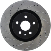 Les disques de frein sport percés StopTech sont des disques de frein monobloc de remplacement direct pour les systèmes de freinage d'usine et les étriers de série qui ont fière allure derrière vos roues et offrent des performances de freinage considérablement améliorées. Le perçage transversal unique facilite la dispersion de la chaleur et de la poussière de frein, empêche le glaçage des plaquettes, ajoute du mordant et améliore les performances de freinage sur sol sec et humide. Conçu pour durer, le revêtement électronique noir offre une protection contre la corrosion et la métallurgie à haute teneur en carbone (dans la plupart des applications) offre un fonctionnement plus silencieux, une meilleure résistance aux fissures et des performances accrues.
