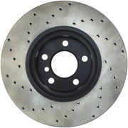 Les disques de frein sport percés StopTech sont des disques de frein monobloc de remplacement direct pour les systèmes de freinage d'usine et les étriers de série qui ont fière allure derrière vos roues et offrent des performances de freinage considérablement améliorées. Le perçage transversal unique facilite la dispersion de la chaleur et de la poussière de frein, empêche le glaçage des plaquettes, ajoute du mordant et améliore les performances de freinage sur sol sec et humide. Conçu pour durer, le revêtement électronique noir offre une protection contre la corrosion et la métallurgie à haute teneur en carbone (dans la plupart des applications) offre un fonctionnement plus silencieux, une meilleure résistance aux fissures et des performances accrues.