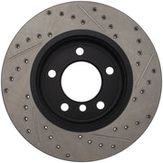 Les disques de frein sport percés et rainurés StopTech sont des disques de frein monobloc de remplacement direct pour les systèmes de freinage d'usine et les étriers de série qui ont fière allure derrière vos roues et offrent des performances de freinage considérablement améliorées. Le perçage transversal et le rainurage uniques facilitent la dispersion de la chaleur et de la poussière de frein, empêchent le glaçage des plaquettes, ajoutent du mordant et améliorent les performances de freinage sur sol sec et humide. Conçu pour durer, le revêtement électronique noir offre une protection contre la corrosion et la métallurgie à haute teneur en carbone (dans la plupart des applications) offre un fonctionnement plus silencieux, une meilleure résistance aux fissures et des performances accrues.