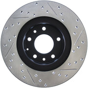 Les disques de frein sport percés et rainurés StopTech sont des disques de frein monobloc de remplacement direct pour les systèmes de freinage d'usine et les étriers de série qui ont fière allure derrière vos roues et offrent des performances de freinage considérablement améliorées. Le perçage transversal et le rainurage uniques facilitent la dispersion de la chaleur et de la poussière de frein, empêchent le glaçage des plaquettes, ajoutent du mordant et améliorent les performances de freinage sur sol mouillé et sec. Conçus pour durer ; le revêtement électronique noir offre une protection contre la corrosion et la métallurgie à haute teneur en carbone (dans la plupart des applications) offre un fonctionnement plus silencieux, une meilleure résistance aux fissures et des performances accrues.
