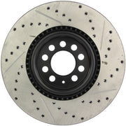 Les disques de frein sport percés et rainurés StopTech sont des disques de frein monobloc de remplacement direct pour les systèmes de freinage d'usine et les étriers de série qui ont fière allure derrière vos roues et offrent des performances de freinage considérablement améliorées. Le perçage transversal et le rainurage uniques facilitent la dispersion de la chaleur et de la poussière de frein, empêchent le glaçage des plaquettes, ajoutent du mordant et améliorent les performances de freinage sur sol sec et humide. Conçu pour durer, le revêtement électronique noir offre une protection contre la corrosion et la métallurgie à haute teneur en carbone (dans la plupart des applications) offre un fonctionnement plus silencieux, une meilleure résistance aux fissures et des performances accrues.