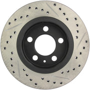 Les disques de frein sport percés et rainurés StopTech sont des disques de frein monobloc de remplacement direct pour les systèmes de freinage d'usine et les étriers de série qui ont fière allure derrière vos roues et offrent des performances de freinage considérablement améliorées. Le perçage transversal et le rainurage uniques facilitent la dispersion de la chaleur et de la poussière de frein, empêchent le glaçage des plaquettes, ajoutent du mordant et améliorent les performances de freinage sur sol mouillé et sec. Conçus pour durer ; le revêtement électronique noir offre une protection contre la corrosion et la métallurgie à haute teneur en carbone (dans la plupart des applications) offre un fonctionnement plus silencieux, une meilleure résistance aux fissures et des performances accrues.