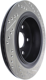 Les disques de frein sport percés et rainurés StopTech sont des disques de frein monobloc de remplacement direct pour les systèmes de freinage d'usine et les étriers de série qui ont fière allure derrière vos roues et offrent des performances de freinage considérablement améliorées. Le perçage transversal et le rainurage uniques facilitent la dispersion de la chaleur et de la poussière de frein, empêchent le glaçage des plaquettes, ajoutent du mordant et améliorent les performances de freinage sur sol sec et humide. Conçu pour durer, le revêtement électronique noir offre une protection contre la corrosion et la métallurgie à haute teneur en carbone (dans la plupart des applications) offre un fonctionnement plus silencieux, une meilleure résistance aux fissures et des performances accrues.