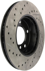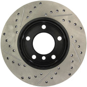 Les disques de frein sport percés et rainurés StopTech sont des disques de frein monobloc de remplacement direct pour les systèmes de freinage d'usine et les étriers de série qui ont fière allure derrière vos roues et offrent des performances de freinage considérablement améliorées. Le perçage transversal et le rainurage uniques facilitent la dispersion de la chaleur et de la poussière de frein, empêchent le glaçage des plaquettes, ajoutent du mordant et améliorent les performances de freinage sur sol sec et humide. Conçu pour durer, le revêtement électronique noir offre une protection contre la corrosion et la métallurgie à haute teneur en carbone (dans la plupart des applications) offre un fonctionnement plus silencieux, une meilleure résistance aux fissures et des performances accrues.