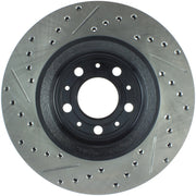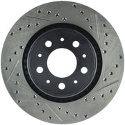 Les disques de frein sport percés et rainurés StopTech sont des disques de frein monobloc de remplacement direct pour les systèmes de freinage d'usine et les étriers de série qui ont fière allure derrière vos roues et offrent des performances de freinage considérablement améliorées. Le perçage transversal et le rainurage uniques facilitent la dispersion de la chaleur et de la poussière de frein, empêchent le glaçage des plaquettes, ajoutent du mordant et améliorent les performances de freinage sur sol sec et humide. Conçu pour durer, le revêtement électronique noir offre une protection contre la corrosion et la métallurgie à haute teneur en carbone (dans la plupart des applications) offre un fonctionnement plus silencieux, une meilleure résistance aux fissures et des performances accrues.
