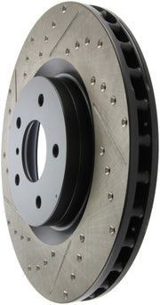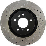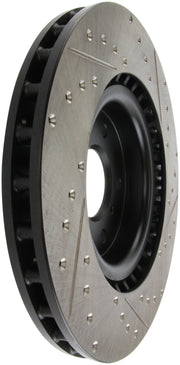 Les disques de frein sport percés et rainurés StopTech sont des disques de frein monobloc de remplacement direct pour les systèmes de freinage d'usine et les étriers de série qui ont fière allure derrière vos roues et offrent des performances de freinage considérablement améliorées. Le perçage transversal et le rainurage uniques facilitent la dispersion de la chaleur et de la poussière de frein, empêchent le glaçage des plaquettes, ajoutent du mordant et améliorent les performances de freinage sur sol sec et humide. Conçu pour durer, le revêtement électronique noir offre une protection contre la corrosion et la métallurgie à haute teneur en carbone (dans la plupart des applications) offre un fonctionnement plus silencieux, une meilleure résistance aux fissures et des performances accrues.